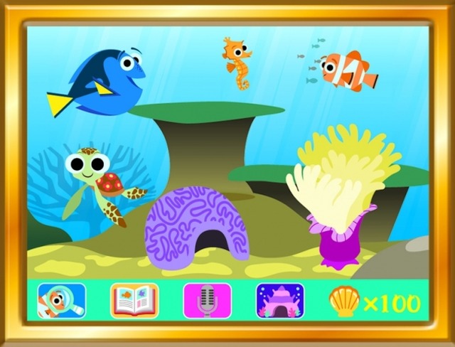 プライベートマリン:「ファインディングゲーム」でみつけたお友達が遊びにきたり、見つけたアイテムを配置して、私だけのマリンを作ることができます。あかちゃんフィッシュをお世話したりもできます。