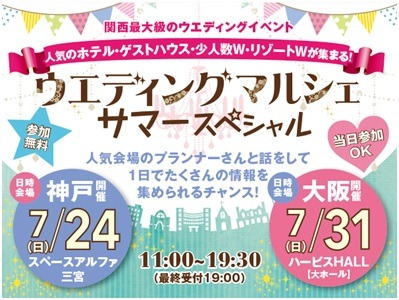 株式会社サンケイリビング新聞社(本社:東京都千代田区、代表取締役:和田 直樹)が発行する、無料の結婚情報誌「レイウエディング大阪・兵庫・奈良」は、大阪・兵庫・奈良の人気結婚式場が一堂に集まる関西最大級のブライダルイベント「ウエディングマルシェ サマースペシャル」を開催いたします。