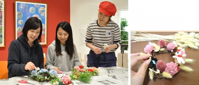 体験メニューは、ドライフラワーアレンジ、ジェルキャンドルづくり、アロマスプレーづくり、サンドブラスト、ステンドビーズづくりの5種類からお選びいただけます。いずれも「リサとガスパール」のパーツが使用できるなど、ここでしか作ることができないアイテムで、価格は1,300円~3,000円、完成までの時間は30分~60分となっております。
