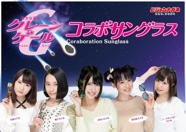 全国108店舗(2016年3月現在)を展開している株式会社ビジョンメガネ(本社:大阪府守口市、代表者:安東晃一)は、ビジョンメガネPR大使の原奈津子さんが出演している人気アニメ『美少女遊戯ユニット クレーンゲール』とコラボし、人気声優5人のキャラクターとのコラボサングラスを2016年7月1日(金)から数量・エリア限定で販売を開始いたします。
