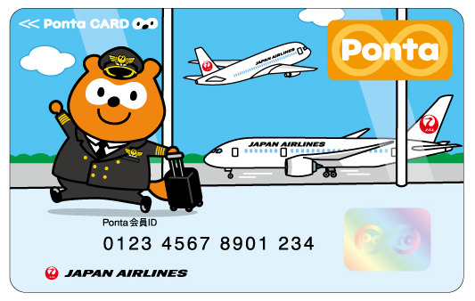 提携企業ごとにデザインされた「Pontaカード」には、お手伝いが大好きなキャラクター「ポンタ」が各企業の社員・店員に変身した姿が描かれています。今回の「JAL Pontaカード」は、ワクワクする“空の旅”をイメージして、空港とJALの航空機を背景に、パイロットの制服を着たJALオリジナルの「ポンタ」がデザインされています。