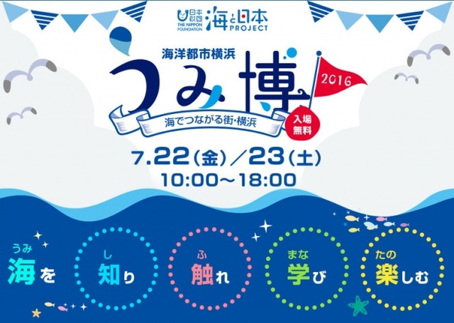 海に関する26の企業・団体で構成する「海洋都市横浜うみ協議会」は、7/22(金)・23(土)に横浜・大さん橋ホール(大さん橋国際旅客ターミナル内)にて、「海洋都市横浜うみ博2016~海でつながる街・横浜~」を初開催します。