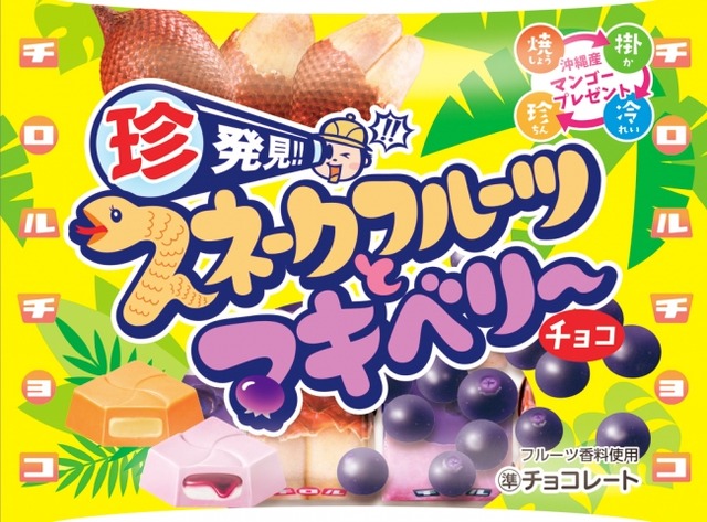 「沖縄産マンゴー」が当たる春夏ロングランキャンペーンを実施中。ラスト商品として「スネークフルーツとマキベリー」が登場!珍種フルーツをチョコで再現しました。