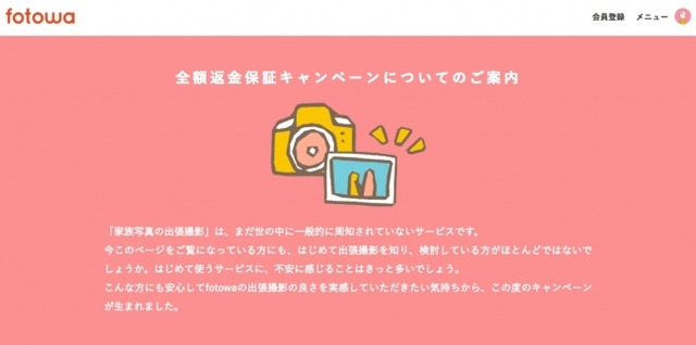 一方で、スタジオや写真館で家族写真を残すことに馴染みはあっても「出張撮影マッチング」は、まだ馴染みのない新しいサービスです。だからこそ、利用者の不安を払拭することで、もっと気軽に利用していただけるよう「全額返金保証キャンペーン」の実施へと至りました。