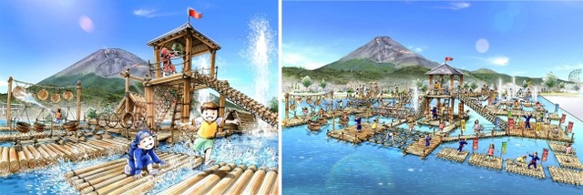 富士山2合目の遊園地「ぐりんぱ」(静岡県裾野市)では、水面に設置されたイカダ渡りや、樽に乗って水上を移動する遊具など18種類からなる巨大水上アスレチック「カッパ大作戦」を平成28年7月30日(土)にオープンいたします。