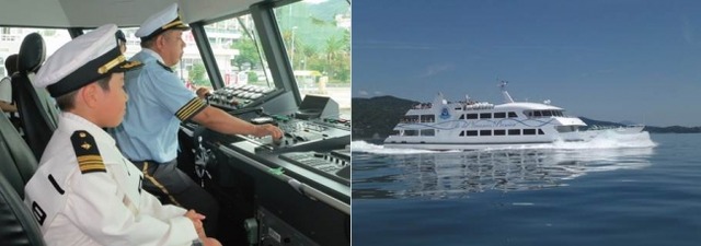 さらに弊社では、高速クルーズ船「イルドバカンスプレミア」を活用したオリジナルのイベントとして「小学生1日船長体験」を実施いたします。こちらは、公募により選ばれた3名の小学生が「1日船長」となって、特製ユニフォームを着て普段は入れないブリッジ(操舵室)にて、船内放送など船長の業務体験、お客様のお出迎えなどを体験する毎年恒例の人気企画です。