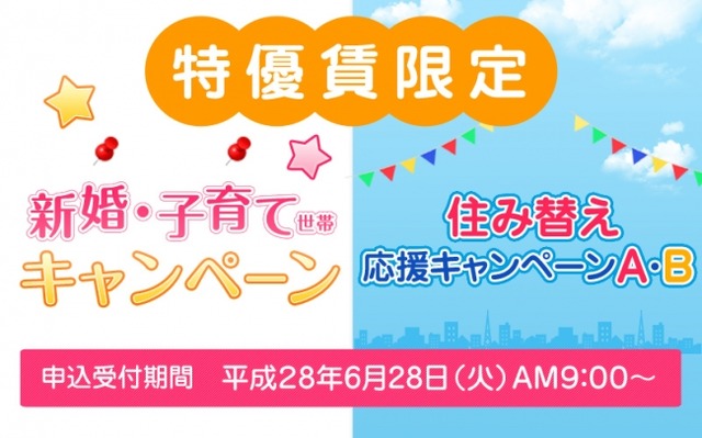 新婚・子育て世帯(※)向け及び一般世帯向けのキャンペーンを6月29日(水)より実施しております。