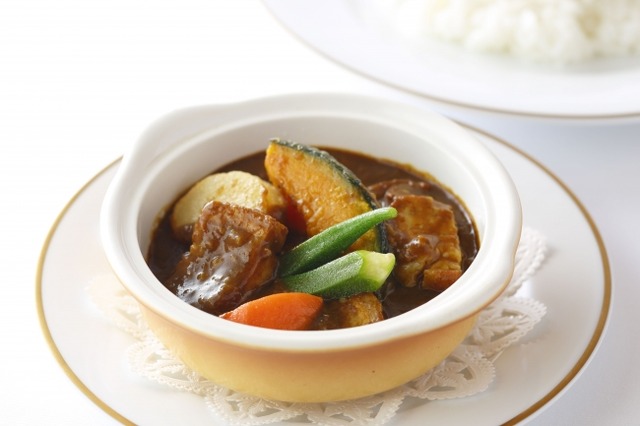 資生堂パーラー伝統のカレーソースにオニオンアッシェ、スパイス、にんにく、生姜でアレンジしたルーを加え、深みとのある香り豊かでまろやかな味わいに仕立てました。