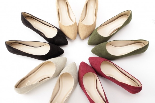 フラットシューズで一番気になるのが、コーディネートした時の全体のバランス感。 ヒールがない分、楽だけれど、スタイルが悪く見えてしまうといった悩みを解決する為、底に内蔵した 1.1cmのインヒール(※)が、さりげなくスタイルアップしてくれます。 スウェード調素材を使用し、シンプルな5色展開(内、2色はWEB限定カラー)。デザインは、シャープなつま先のポインテッドトゥで、カジュアルな中にも上品さの漂う、大人女性に嬉しいパンプスが完成しました。