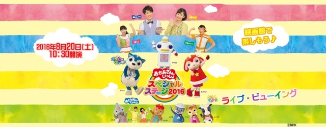 株式会社NHKエデュケーショナルは、8月20日(土)に開催する「おかあさんといっしょスペシャルステージ2016」の模様を、株式会社ライブ・ビューイング・ジャパンの協力により、全国の映画館でライブ上映いたします。