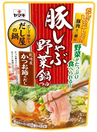 ヤマキは、だしの質・素材・ブレンドにこだわった『だしで味わうだし屋の鍋』シリーズから、だしで豚肉をしゃぶしゃぶし、野菜がたっぷり食べられる「豚しゃぶ」の新しい美味しさを追求した「豚しゃぶ野菜鍋つゆ豆乳仕立て」を新発売します。