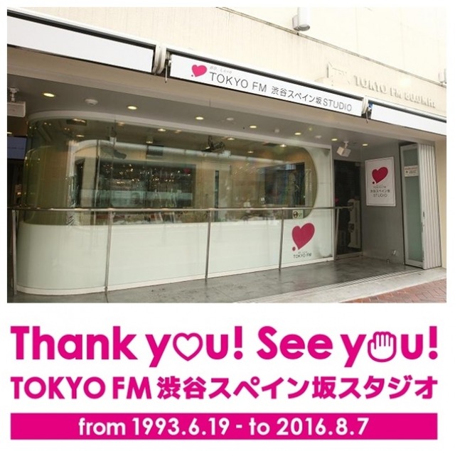 1993年の6月19日、渋谷PARCOパート1の1階に誕生してから23年間、永きにわたって支えて下さった皆様への感謝を込めて、7月18日(月・祝)~8月7日(日)、スペシャルイベント「Thank you! See you! TOKYO FM渋谷スペイン坂スタジオ1993-2016」を開催致します。