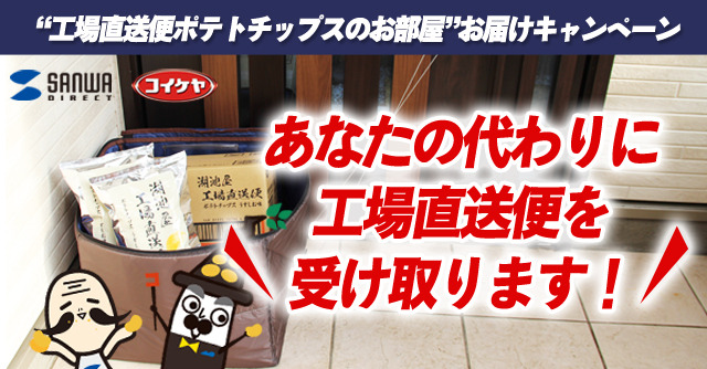 様々な検討を続ける中、不在時であっても「湖池屋 工場直送便 ポテトチップス うすしお味」が一時的に待機していられる“お部屋”を増やしていくことで“待機ポテトチップス問題”が解消されるという考えに至り、サプライ業界のなんでも屋と言われるサンワダイレクトに企画を持ち込み、コラボレーションキャンペーンが実現することになりました。