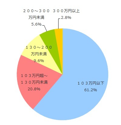個人年収「103万円以下」61.2%、多くが配偶者控除を意識か