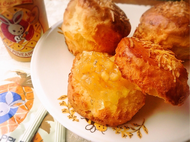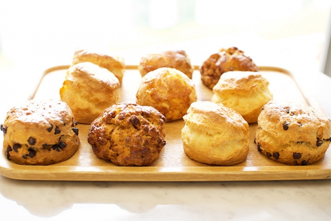 パイナップルをたっぷりと生地に混ぜ込み、アクセントにココナッツを加えたトロピカルな夏スコーン。これからの暑い時期には、アイスを挟んで食べるのもおすすめです。