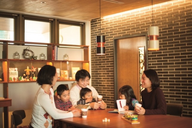 園(子ども)、家族(保護者)、社会(地域の人)の一体化を目指した地域交流スペースです。子育て家族をサポートするとともに、地域に開かれた施設として、地域社会の交流地点となる場を提供しています。
