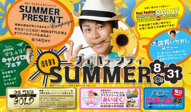 7月16日(土)から8月31日(水)までの期間で、NON STYLE井上裕介さんとコラボして井上“まみれ”の館内装飾やお買得なキャンペーンを多数実施いたします。