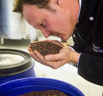 シャポンがBean to Bar工程で作るチョコレートは、産地ごとに焙煎し、コンチングの時間などを変え、カカオ本来の味と香りを最大限に引き出している。Bean to Bar工程だからこそ出来る技である。