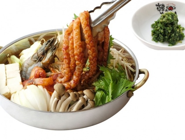 暑い夏こそ熱々の料理を食べる「以熱治熱」(熱を以って熱を治す)という食文化が韓国にある事から、海鮮の旨みと唐辛子ベースの特製スープが深い味わいの釜山名物「手長タコの海鮮旨辛鍋一人前1,290円」とおすすめの〆物「韓国インスタント麺390円」をご用意いたしました。