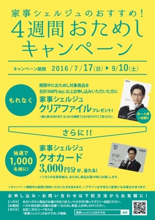 さらに抽選で1,000名様に『家事シェルジュ QUOカード3,000円分』をプレゼント。