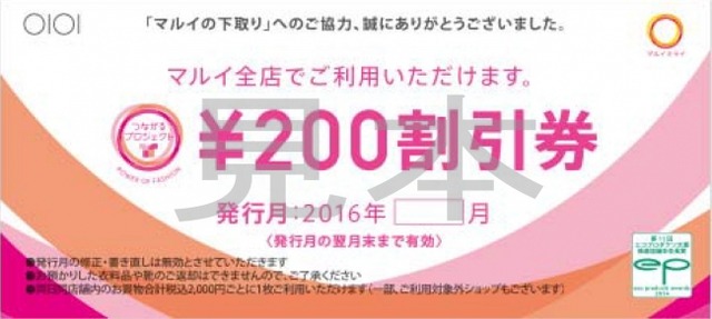 今回の下取りは、婦人靴が対象商品となります。せっかく気に入って買ったのに、「痛い」「疲れる」などの理由でまだ履けるのに履かない、または、新しいのに履けないなど、ご自宅に眠っている靴をぜひお持ちください。下取り1点につき、「マルイのシューズ」、そして「博多マルイ」をはじめとする全国のマルイ店舗でお使いいただける「200円の割引券」1枚を差し上げます。下取りの靴をお持込いただいたその場で、割引券を利用いただいてのお買い物も可能です。