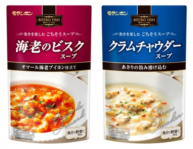 モランボン株式会社(本社:東京都府中市 代表取締役社長:ジョン・ピョンヨリ)では、水産売場向け商品として、ストレートタイプのスープ用調味料「BISTRO FISH 海老のビスクスープ」「BISTRO FISH クラムチャウダースープ」を8月15日(月)より発売いたします。