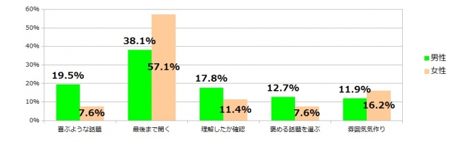 女性の方が話を聞くことをより意識していることがあきらかになった。