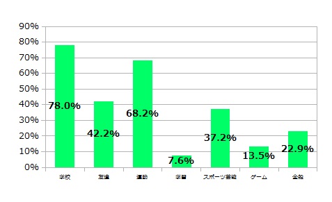 会話の内容は、 1位「学校での話題(78.0%)」、2位「習い事/運動系(68.2%)」、3位「友達の話題(42.2%)」と、共に子どもを中心した内容であることがわかる。