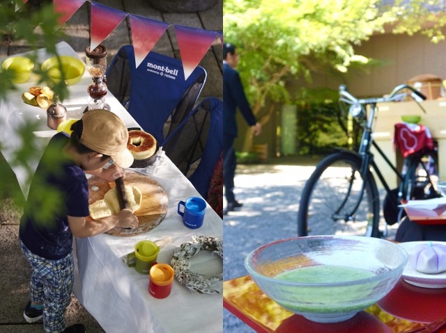 DayTimeは親子で家族1つの大きなパンを作る「南部鉄器タミパンでつくるパンづくり」、1人1つ「大川の木のスプーンづくり」、京都からやってきた「鴨茶の冷やし抹茶づくり」を体験しながら自然の中で美味しいおやつ時間を過ごします。
