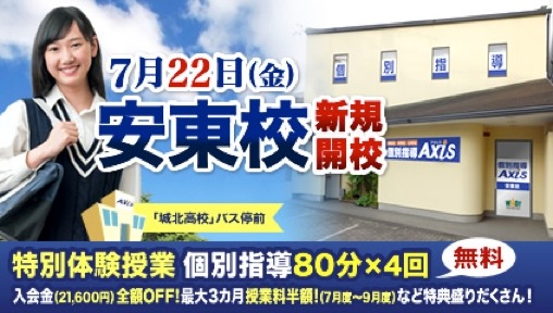 ぜひこの機会に、新たに仲間入りした「個別指導Axis安東校」をご利用ください。