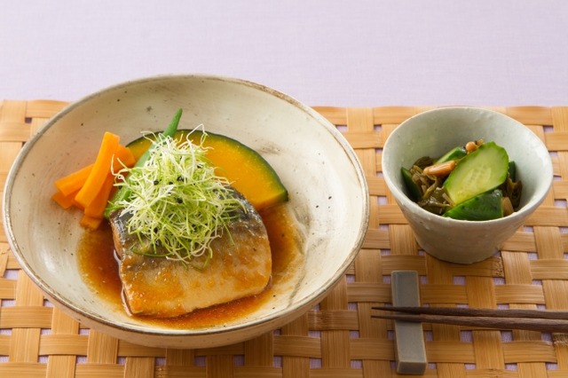 ・「シャキ!糸ねぎ香る、さばのみぞれ煮/きゅうりとめかぶのなめたけ和え」