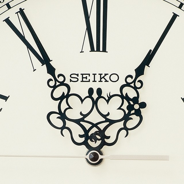 ミッキーマウスとミニーマウスをモチーフにした時針と分針が、1日に22回出会ってキスをするロマンチックな演出です。また、すれ違う際にはしっぽ同士がハートを形作ります。