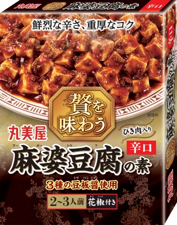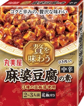 丸美屋食品工業株式会社(本社:東京都杉並区、社長:阿部豊太郎)では、大人の本格嗜好を満たす人気の「贅を味わう」シリーズより、「贅を味わう 麻婆豆腐の素<中辛>」「贅を味わう 麻婆豆腐の素<辛口>」の品質とパッケージを刷新し、2016年8月からリニューアル発売いたします。