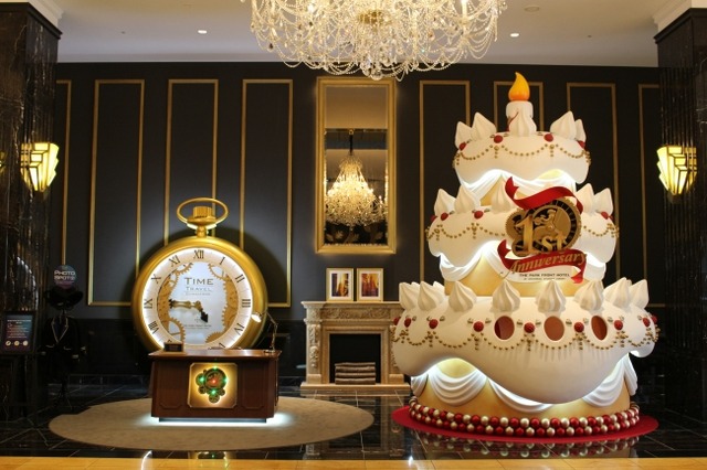 ザ パーク フロント ホテル アット ユニバーサル・スタジオ・ジャパンでは、9月8日(木)まで、「はじめてのバースデーパーティへご招待」をテーマに、ワクワク・ドキドキする仕掛けを、連続して体験いただけるポイントを館内各所にご用意。豪華なWELCOMEリボンのイルミネーションをはじめ、ビッグなアニバーサリーケーキのフォトスポットや、タイムトラベル・コンシェルジュの約2.6mの巨大な懐中時計には、大人も、子供も思わずWOW!と口に出してしまいそう!