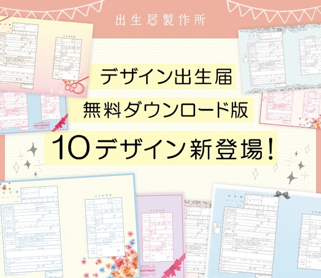 実際に役所に提出できる、10種のデザイン出生届(無料ダウンロード版・購入版)が新登場!