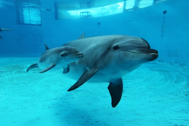市立しものせき水族館・海響館【運営:公益財団法人下関海洋科学アカデミー(所在地:山口県下関市あるかぽーと6-1 理事長 中尾友昭)】では、開館当初からバンドウイルカの繁殖に取り組んでおり、平成21年7月には1頭の赤ちゃんが誕生し成育しました。そして今年(平成28年)の3月から5月にかけて、立て続けにバンドウイルカの出産があり、3頭の赤ちゃんが無事に成育しています。