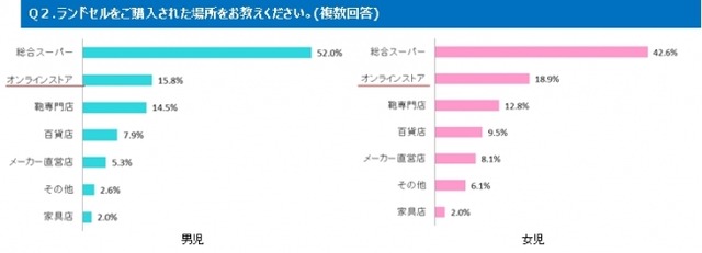 ■ランドセル購入場所は、百貨店やメーカー直営店を押さえ「オンラインストア」が2位