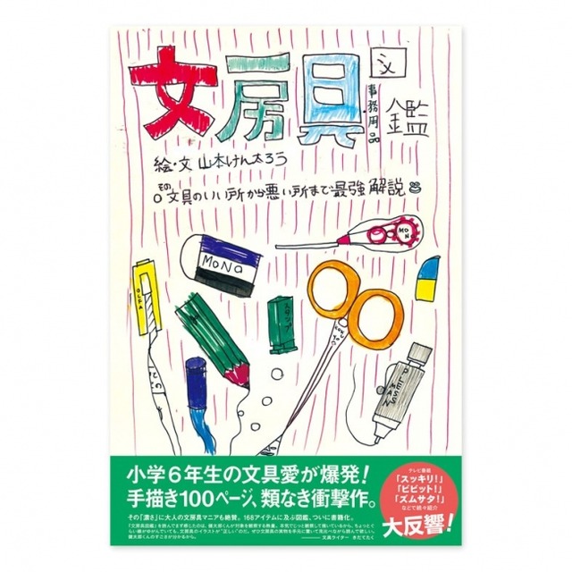 2015年に当時小学6年生だった山本健太郎くんが、大好きな文房具168個について全て手書きで解説した本です。その中身の濃密さ、解説や図の正確さ、そして文房具への愛情の深さから、SNSを通して瞬く間に話題となり、2016年3月には、いろは出版から書籍化。5万部を超すヒットとなっています。