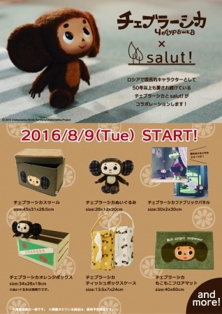 株式会社パル(本社:大阪市中央区北浜3-5-29 代表取締役社長:井上隆太)が展開するインテリア雑貨を中心としたショップ『salut!』(サリュ)は、2016年7月25日よりチェブラーシカ×salut!のコラボ企画商品をPALCLOSET限定で予約販売を致します。