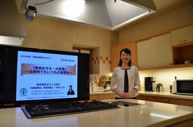 防災食アドバイザーの今泉マユ子先生は、「地震だけでなく、大雪や台風などの災害、新型インフルエンザ等の新型感染症、テロ、武力攻撃に備えても備蓄は必要」と主張しました。