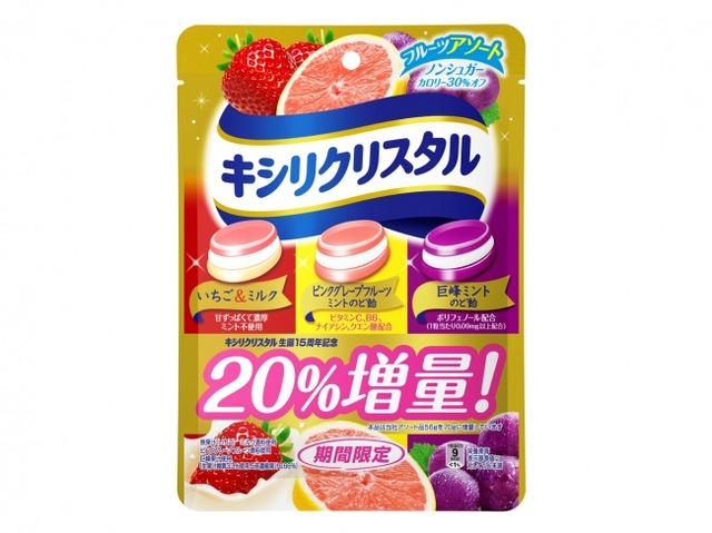 モンデリーズ・ジャパン株式会社(本社:東京都品川区 / 代表取締役社長:リアン・カッツ)は、「キシリクリスタル」の発売15周年を記念して、期間限定「キシリクリスタル フルーツアソート」20%増量パッケージを2016年8月29日(月)より、全国のスーパーマーケット、コンビニエンスストア、ドラッグストア、駅売店などで発売開始します。