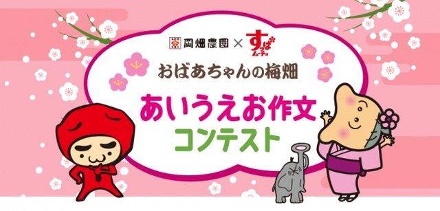 これから“おばあちゃんの梅畑”で育った梅は2017年1月発売予定の「すっぱムーチョ」の新商品に生まれ変わりますが、みなさまと一緒に“おばあちゃんの梅畑”で育った梅の入った「すっぱムーチョ」の誕生を楽しみたいとの想いから、“うめばたけ”のお題であいうえお作文を募集するキャンペーンを実施します。優秀作品はホームページやパッケージにて紹介されるほか、「すっぱムーチョ」の新商品や“おばあちゃんの梅畑”でとれた梅を漬けたオリジナル梅干などがプレゼントされます。ぜひ、ご応募ください。