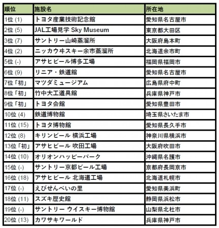 【行ってよかった!工場見学&社会科見学ランキング トップ20】