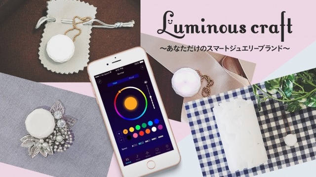 「Luminous craft」は、カラーLED、Bluetooth(R)、3軸加速度センサーを搭載するスマートジュエリーです。