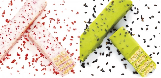 宇治抹茶の風味をきかせたクリームを何層にもサンドしたウエハースをグラサージュし、相性のよい黒ゴマをトッピングすることで、香りと深みをより一層引き立たせています。