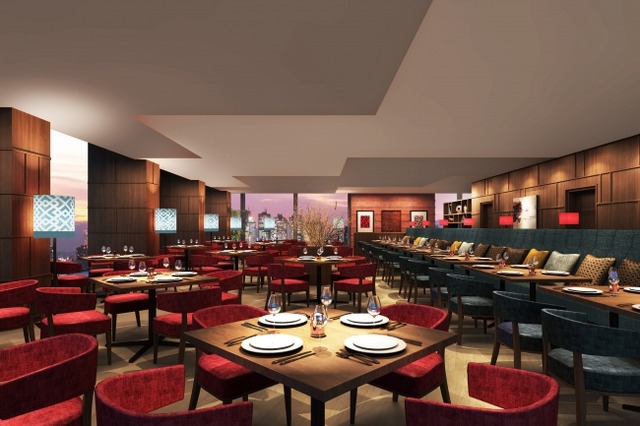 活気がありながらもどこか居心地の良い空間は、ホテル最上階からの都会の景観が華を添えます。