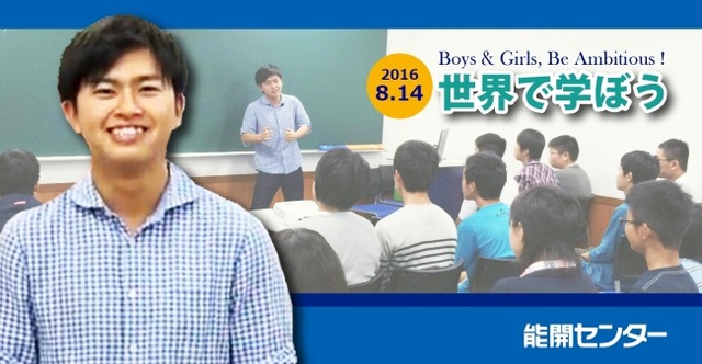 講演を行うのは、能開センターの卒業生、前田智大(まえだともひろ)君。20歳。