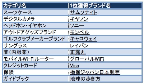 = 各カテゴリで1位を獲得したブランド=