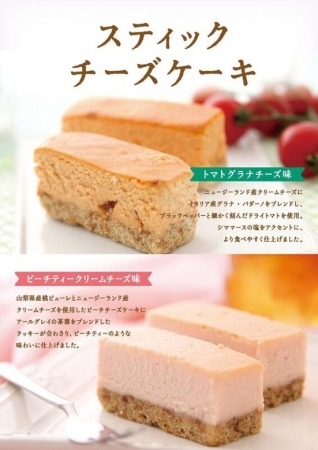 「東京ミルクチーズ工場」では、「スティックチーズケーキ」が新登場します!「トマトグラナチーズ味」と「ピーチティークリームチーズ味」の2種類です。「東京ミルクチーズ工場」ならではの、味の組み合わせをお楽しみ下さい!