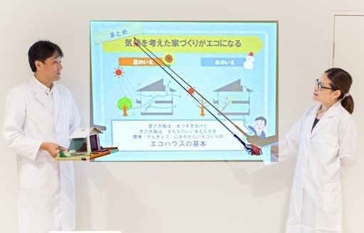 本ワークショップは、窓を通じて、暑い夏を涼しく快適に地球にやさしく少ないエネルギーで過ごすための工夫を学べる、YKK APのオリジナルプログラムです(※1)。窓の素材ごとの熱伝導の違いや、サーモカメラを使った窓の断熱実験などを行ない、親子で楽しく学びながらエコハウスを工作します。